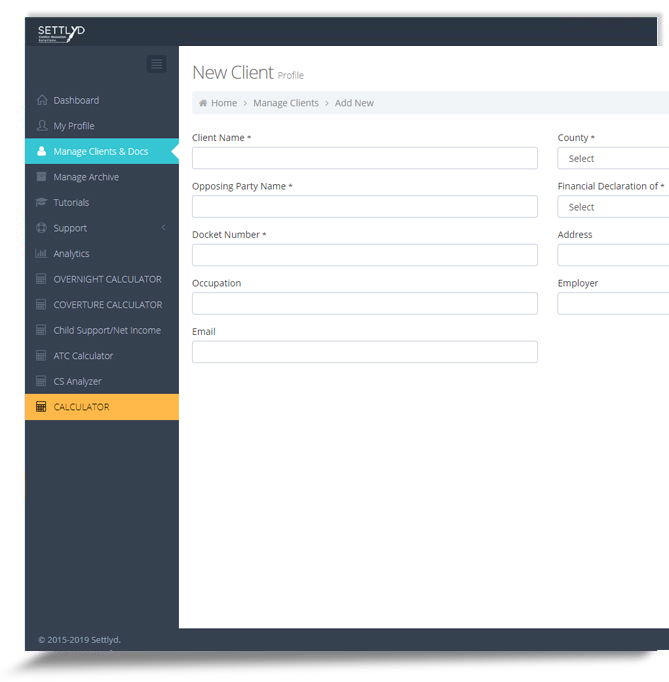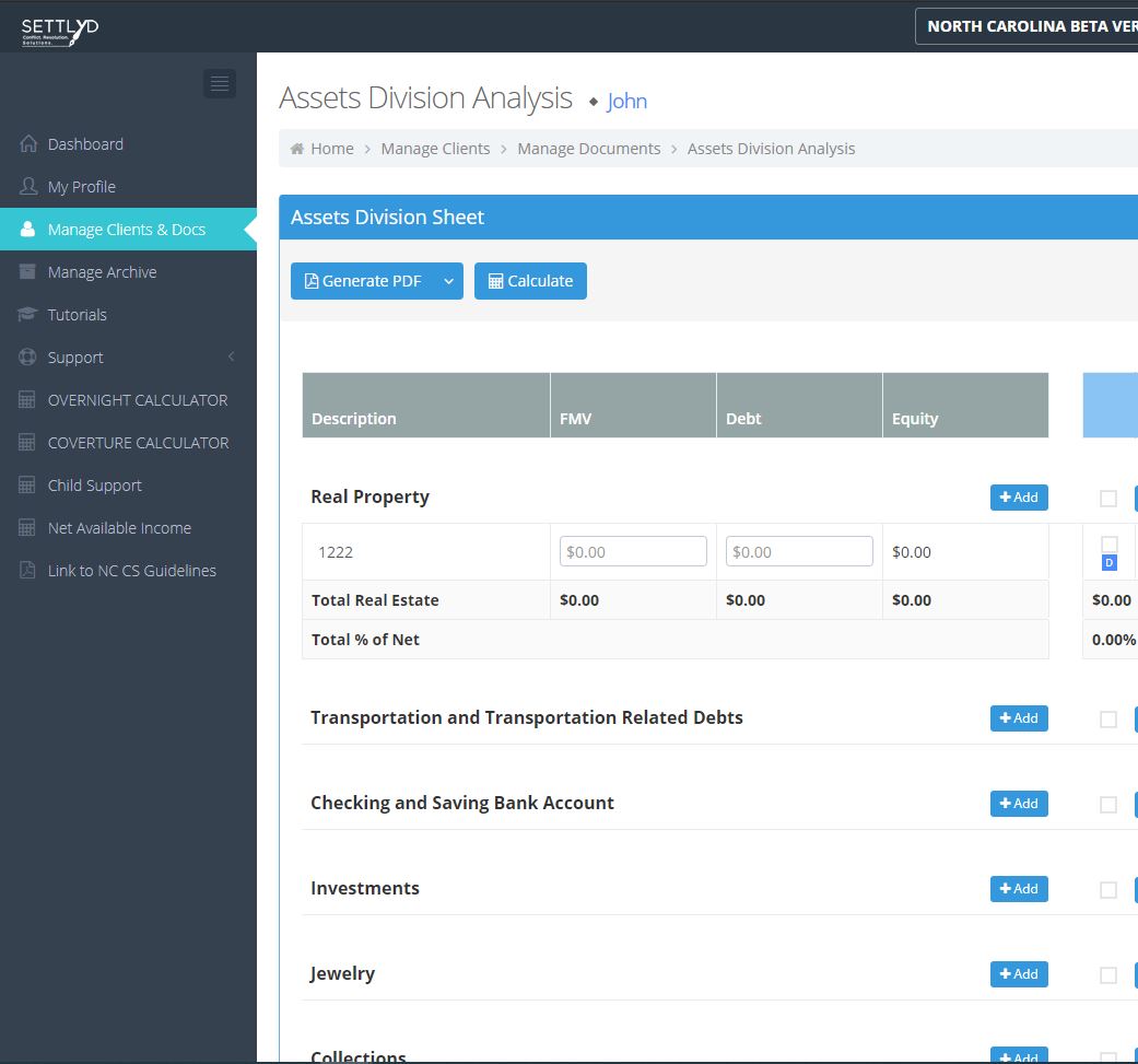 Sign up for a Free TrialOur firm had been looking for a software solution to help us with family law financial issues when we found Settlyd. We chose Settlyd over all the others because it was simple and easy to use while giving us the tools we needed to efficiently and accurately get a handle on our client's financials and support issues. I especially like working with the Asset Division Worksheet because it is very flexible and allows me to explore several different options when apportioning marital property.